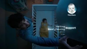 We created a series of three bespoke films, complemented by assets across TV, streaming services, social media, and digital channels, to reach parents throughout their journey. The campaign launched in February 2024 as part of a larger effort to revitalize the Gerber brand for a new generation of parents.